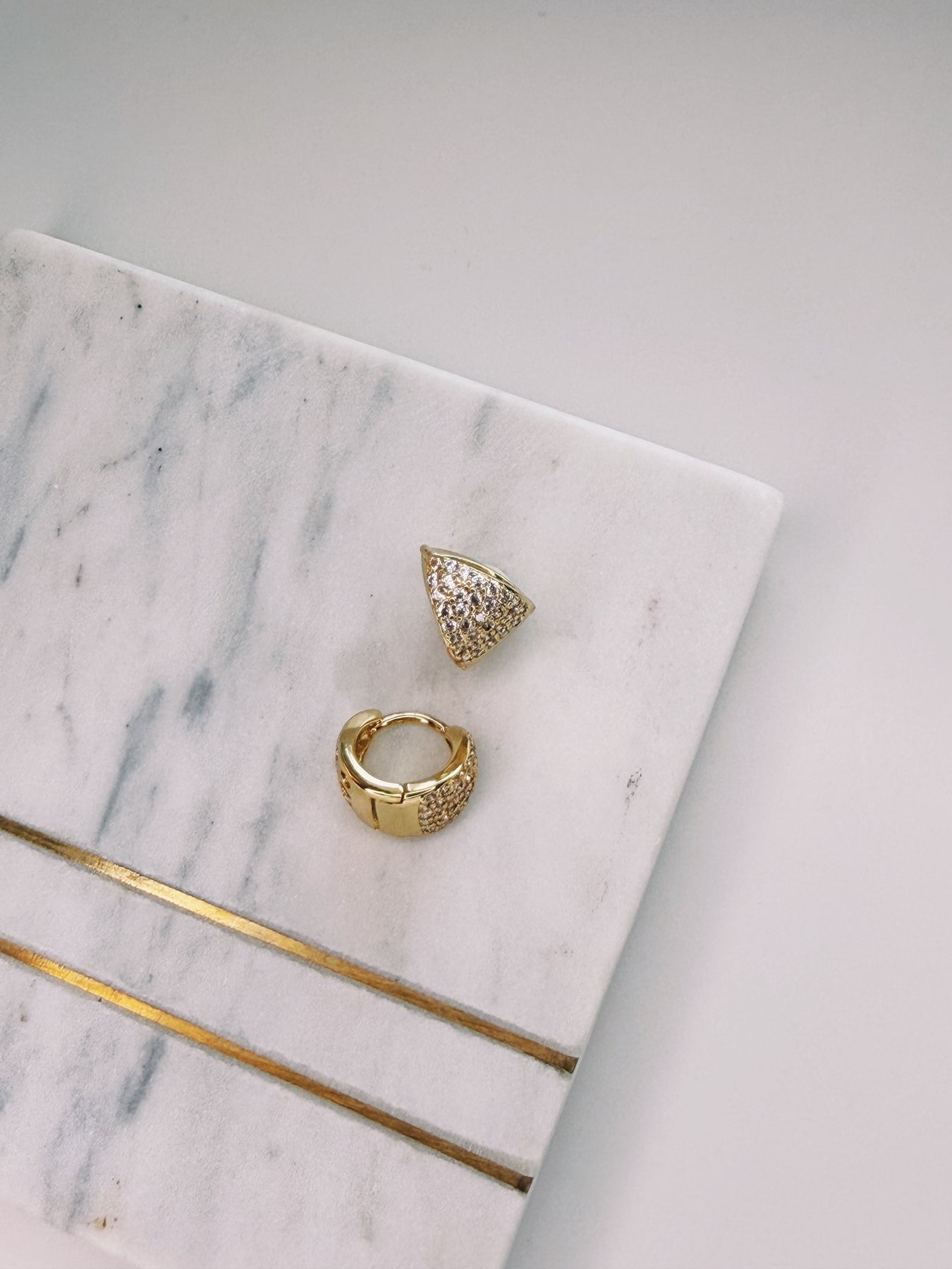 18K gold plated brass huggies. Earring measures 15mm wide and 13mm tall.